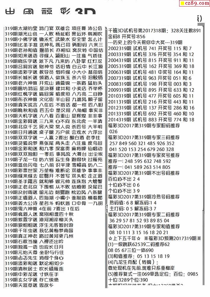 > 杀手+鑫马快报+字迷汇总25年319期3d图谜